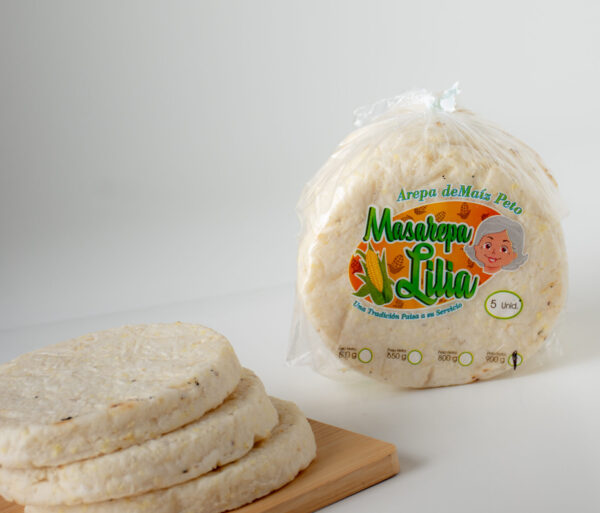 Paquete (5und/900g). Arepa gruesa con una abertura ideal para rellenar.